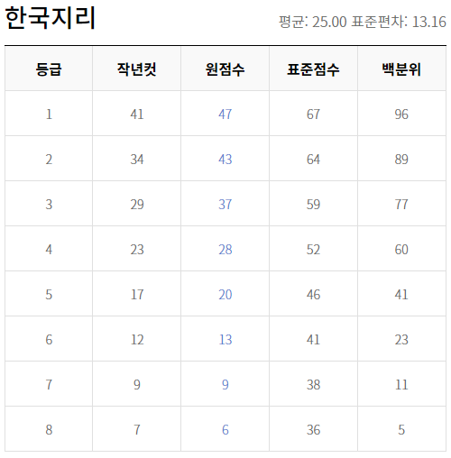 2020년 고3 3월 모의고사 한국지리 등급컷 (2020년 4월 26일 목요일 시행).png