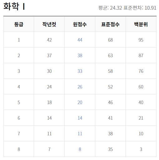 2022년 고3 4월 모의고사 화학1 등급컷 (2022년 4월 13일 수요일 시행).png