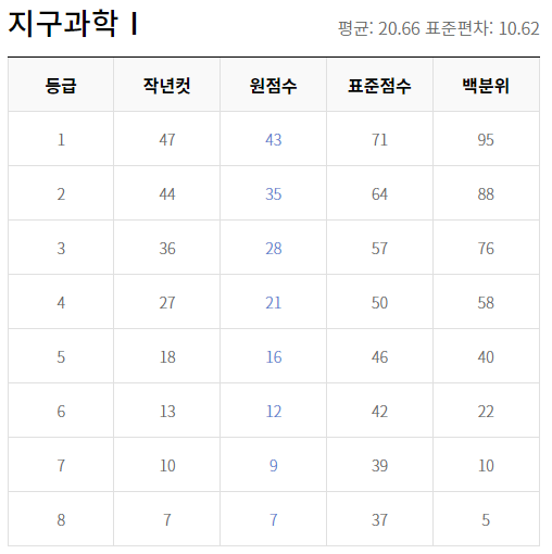 2022년 고3 4월 모의고사 지구과학1 등급컷 (2022년 4월 13일 수요일 시행).png