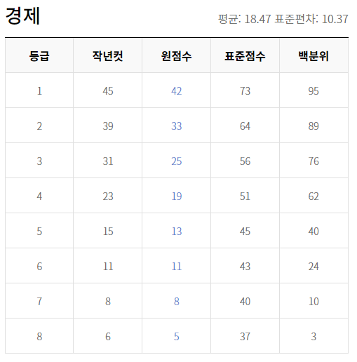 2022년 고3 4월 모의고사 경제 등급컷 (2022년 4월 13일 수요일 시행).png