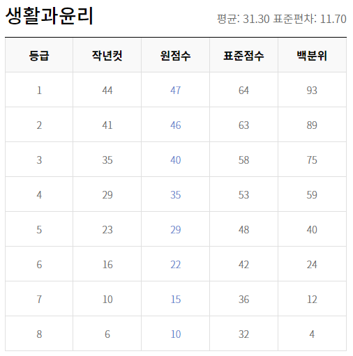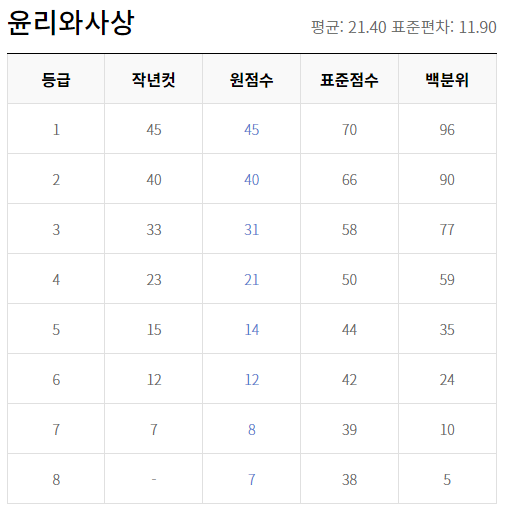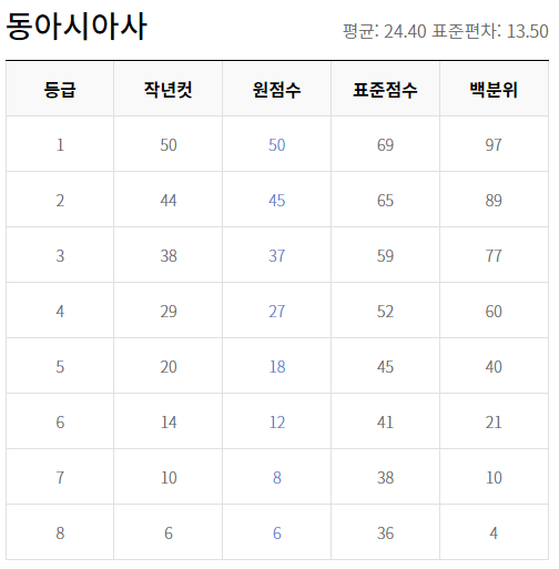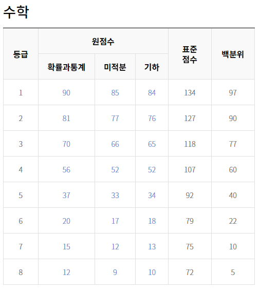 2022년 6월 고3 모의고사 등급컷