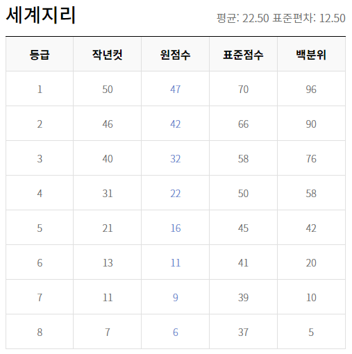 2022년 9월 고3 모의고사 등급컷