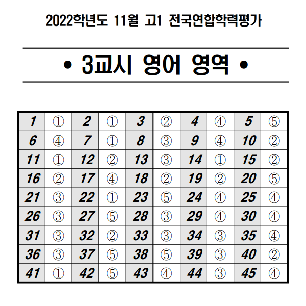 | 2022년 11월 고1 모의고사 문제지와 해설지 (2022년 11월 23일 수요일) | ||