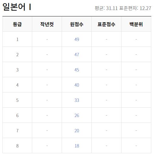 2020년 11월 고2 모의고사 등급컷