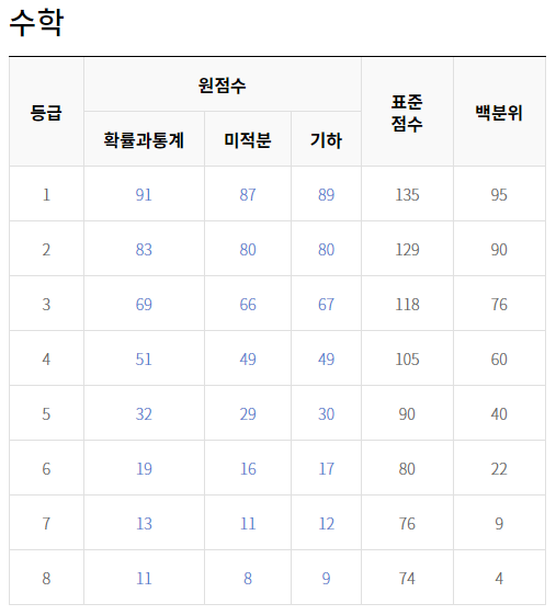2021년 7월 고3 모의고사 등급컷
