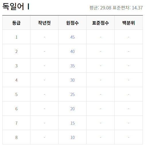 2021년 고3 10월 모의고사 독일어1 등급컷 (2021년 10월 12일 화요일 시행).png