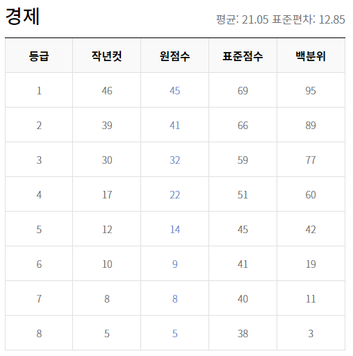 2021년 고3 10월 모의고사 경제 등급컷 (2021년 10월 12일 화요일 시행).png